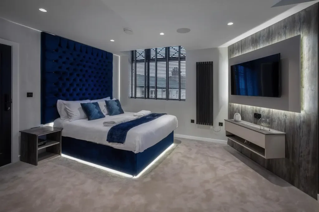 Elegant hotel in the heart of Blackpool, The Charleston occupies a beautifully restored building in the bustling town centre. Just a 60-second stroll from the iconic Winter Gardens, this distinguished hotel seamlessly blends classic charm with contemporary comforts. Step inside to discover thoughtfully designed rooms and inviting communal spaces that echo Blackpool’s storied past, while modern amenities ensure every guest’s comfort.
