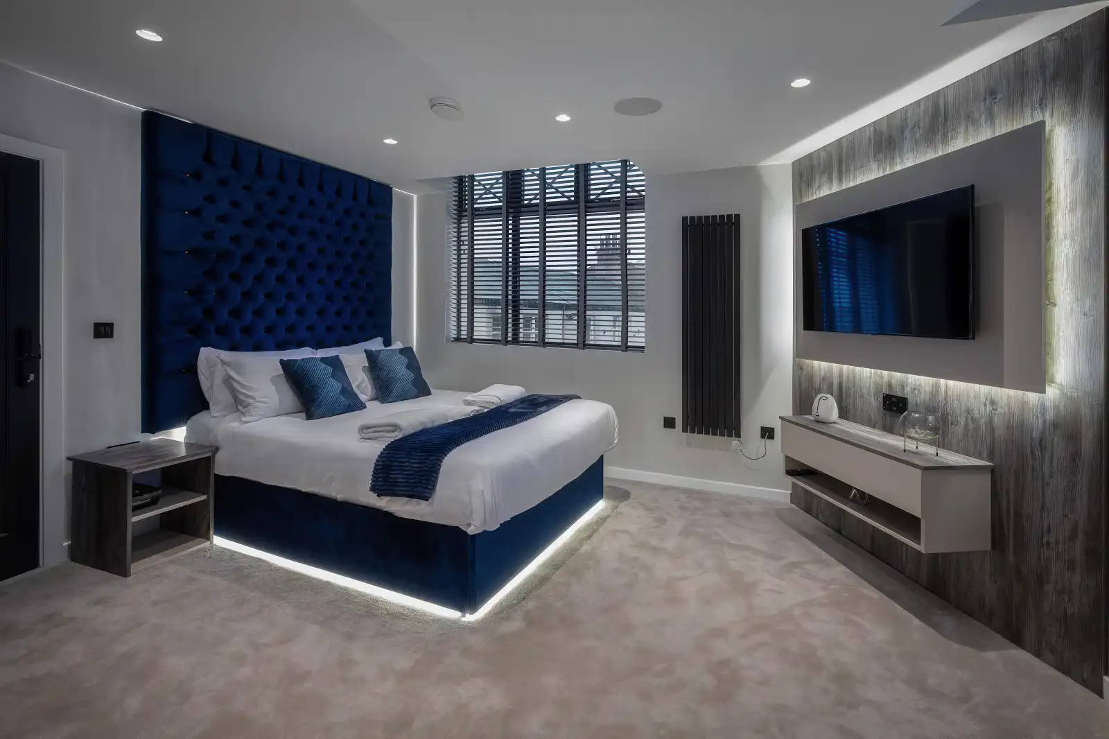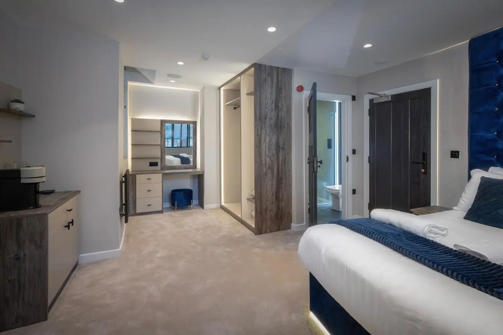 The suite features 1 bedroom, with a king size bed. The bathroom has a shower and free toiletries. The suite offers a wardrobe, dressing table, flat-screen TV with streaming services, an iron and board, a kettle and coffee machine. The location of the suite allows for city views.